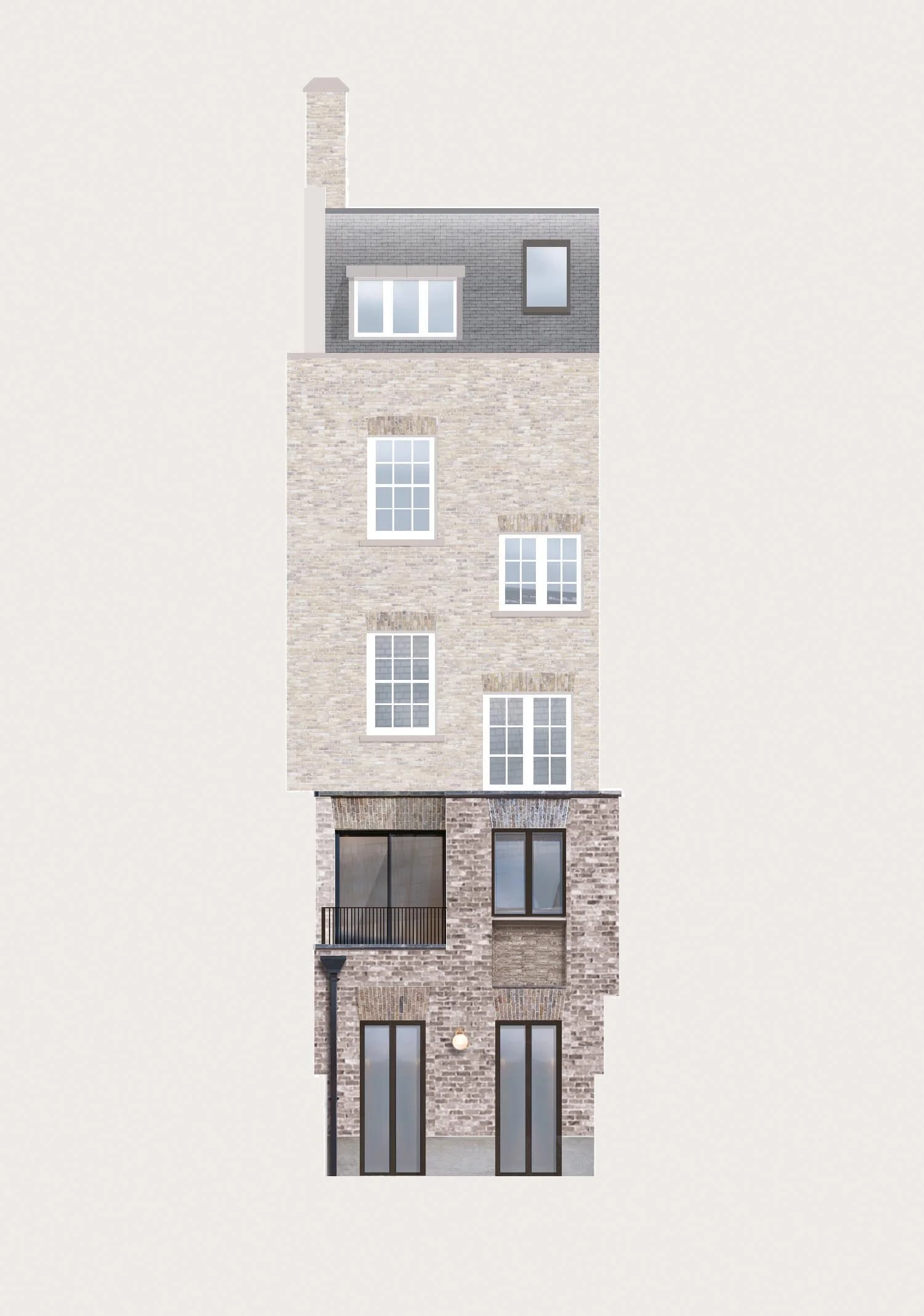 Works to the Grade II* listed townhouse included the partial demolition and rebuilding of an ill-considered 1980s extension to create a bright and airy kitchen and dining space with a glazed sliding corner opening out onto a terrace, the lowering of the basement and garden to provide an additional family room and the comprehensive refurbishment of the whole house, including restoration of the original panelled walls and spiral staircase. The extension openings were carefully crafted with gauged brick arches and a recessed brick channel; a contemporary interpretation of a traditional architectural language to compliment its historic setting. The salvaged London stock bricks of the extension were soot washed to blend with the adjacent original brickwork, while the precision cut brick arches were highlighted in white tuck pointing.